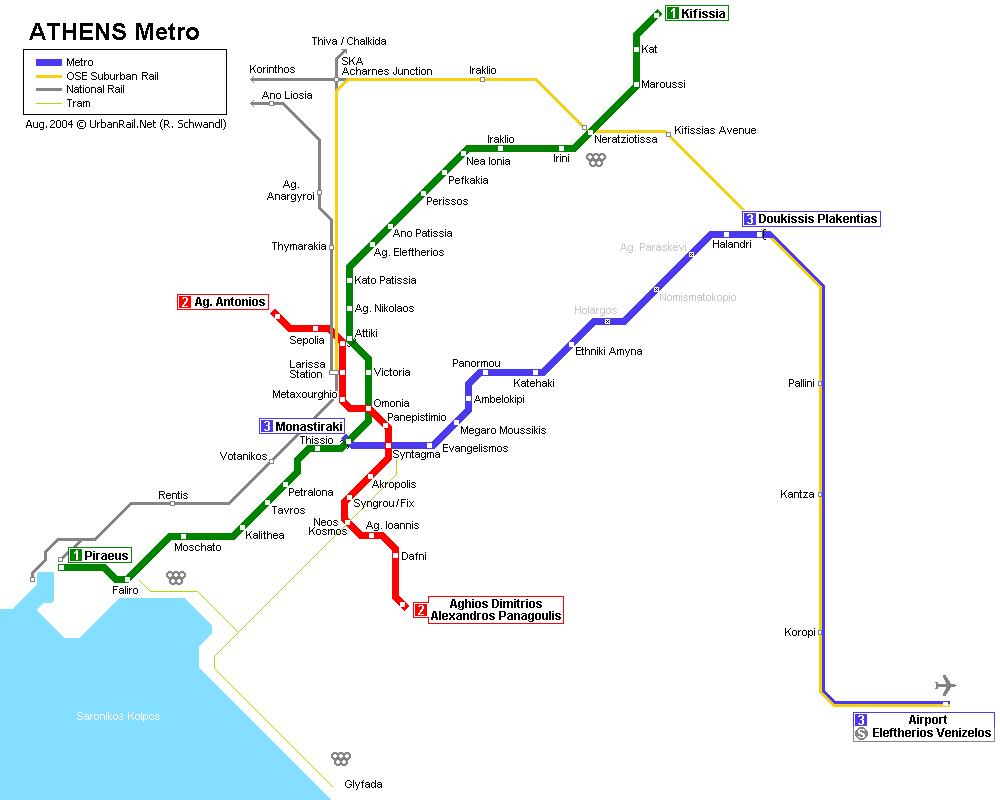 | Athén metro térképe (kattintson a képre) |