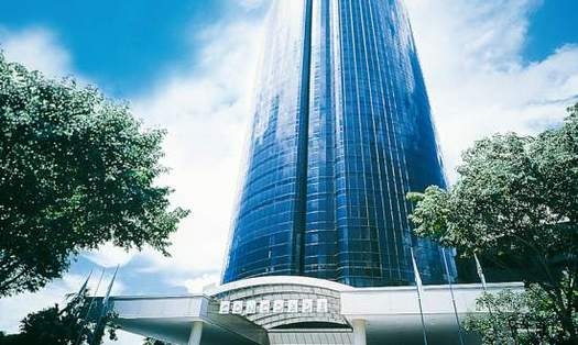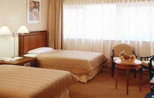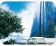 Modern szálloda, impozáns átriummal és üveg felvonókkal.