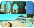 Az enyhe időjárás és a pompázó egzotikus virágok már régóta ellenállhatatlan vonzerőt gyakorolnak az utazókra. Főként a régebbi szállodák csodaszép, nagy kiterjedésű, parkokra emlékeztető kertjei varázsolják el még ma is a látogatókat. Az egykori halászfalu modern üdülőközponttá nőtte ki magát, amely számtalan, mindenfajta kategóriát képviselő szálláshelyet és gazdag sport-, ill. szórakozási lehetőséget kínál. A két golfpálya, a Yasmin és a Citrus miatt Hammamet a golfozók számára is nagyon vonzó. Diszkók, bárok és éttermek teszik teljessé a választékot. A sötétkék tengert szegélyező szép, finomhomokos, enyhén lejtő strandok azonban a turizmus fejlődése ellenére változatlanok maradtak. A városfalakon belül, a kereskedelem központjában, a medinában eldugott, részben fedett kis üzleteket, souk-okat találunk. A városfal teraszán van egy kávézó, ahonnan csodálatos kilátás nyílik Hammamet öblére. Transzferidő: 1 óra 15 perc - 1 óra 30 perc között, szállodától függően. |