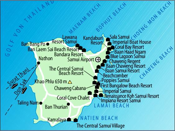 Baan Samui Resort 3*+ - Koh Samui , Chaweng Beach Chaweng Regent Beach Resort 4* - Koh Samui, Chaweng Beach Coral Cove Chalet 3* - Koh Samui , Lamai Beach |